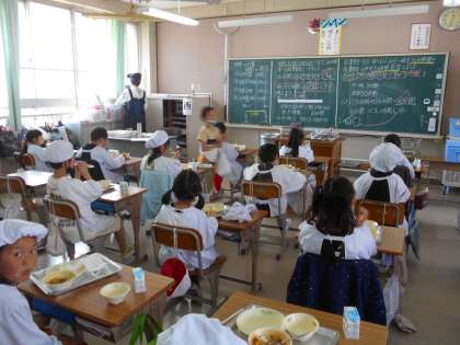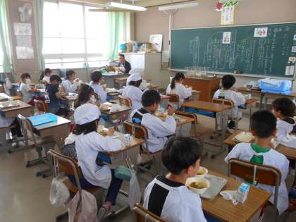 今日の給食の様子です。子どもたちに人気のカレーということで,みんなしっかり食べていました。