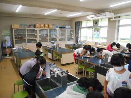 顕微鏡の使い方を学習していました。メダカの卵などを,班ごとに顕微鏡で見ていました。子どもたちは,普通では見えない世界がしっかり見えて大喜びです。顕微鏡の使い方をしっかり覚えてほしいと思います。