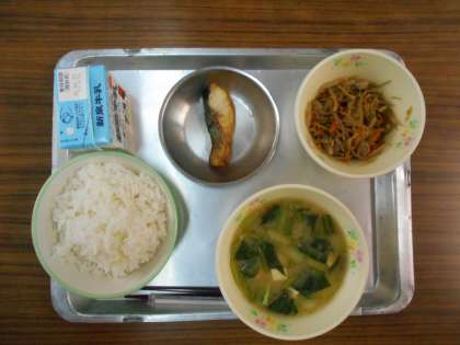 今日のメニューは,ごはん,みそ汁,きんぴらごぼう,さばの塩焼きでした。「THE 和食」というメニューです。