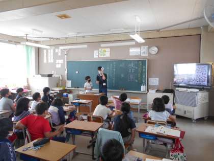 聞き方やメモの仕方の学習をした後,社会の学習とからめながら,ヒントをしっかり聞いてどこの都道府県かを答えていました。先生が○×の判定機(正解・不正解で違う音が出ます)を持って,楽しみながら学習することができました。