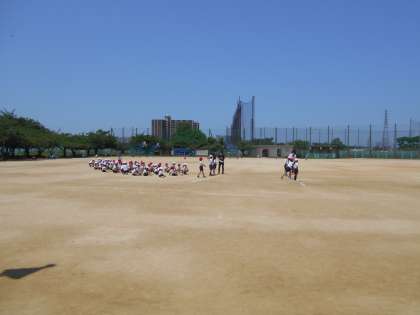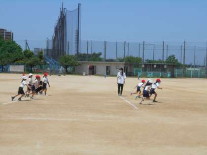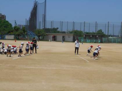 1・2年生合同で,徒競走の練習をしていました。「よーい,どん。」の合図で,みんな全力で走っていました。