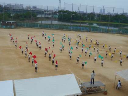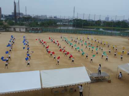体育大会のダンスの練習です。いよいよ本番も近づき,本番同様旗を振ってのダンスです。子どもたちは,楽しみながらも一生懸命踊っていました。あとは本番を待つのみです。