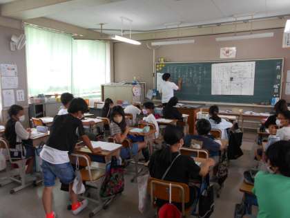総合的な学習の「米作り」と関連して学習を進めていました。報告する文章を書く時の「書き手の工夫」を交流することで,自分たちの米作りに関する報告書にどう生かせるかを考えることができました。