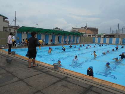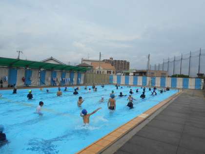 今日が今年度最後の水泳の授業でした。この写真は,クラス対抗でボールの受け渡しリレーを行っているところです。2年間のブランクがありましたが,水にはしっかり慣れることができ,指示したことがきちんとできるので泳ぎもだんだん上手になってきたとのことです。