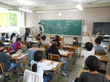 算数では,円の半径と直径について学習していました。どちらも円の中心を通ることや,直径は半径の2倍になることなどについて学びました。