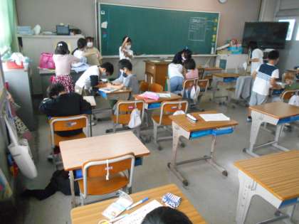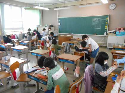 自分たちで決めた係のポスターを作っていました。「お助け係」や「SDGs係」など,いろいろな係を考えて,楽しくポスターを作ることができました。
