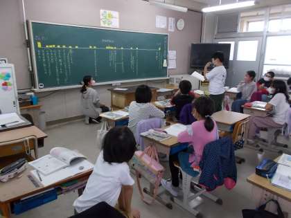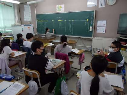 大和川の付け替えについて,学習しました。賛成と反対両方の村の意見を聞いたうえで,自分の考えをワークに書きました。賛成から反対までの座標軸の中で,自分の意見似合う場所にネームプレートを貼っています。子どもたちは自分の意見を自信をもって発表し,盛り上がる話し合いになりました。