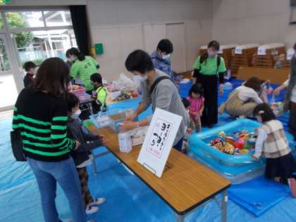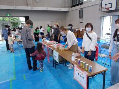 模擬店の様子です。お店がたくさんあって,子どもたちは楽しんでいます。