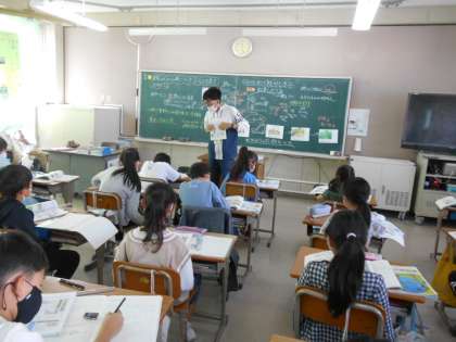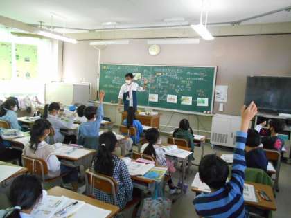 堺市で栽培されている「しろな」について,栽培の工夫や農家の方の思いを学習していました。せっかく育った苗を,途中で間引くのはなぜか考えています。子どもたちは,資料の中から大きく育てるためには間引く必要があることを見つけることができました。
