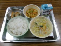 今日のメニューは,オリーブパン,ミートボールシチュー,ツナとキャベツのソテー,コーンブレッドでした。