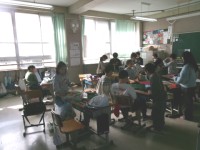 パソコンで文字を入力する学習でした。単に文字を入力するのではなく,「子どもに人気の食べ物は?」「大人がズルいと思うことは?」など,楽しみながら入力していました。キーボード入力は難しいので,手書き入力でもOKにしています。書いた内容を,お互いに交流していました。