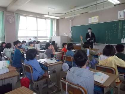 「あいさつ名人」という教材で授業を進めていました。ただ単に大きな声であいさつをするだけではなく,状況に応じたあいさつをすることの大切さを学んでいました。本当の「あいさつ名人」めざして頑張ってほしいと思います。