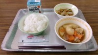 今日のメニューは,ごはん,ちゃんこ汁,焼きししゃも,じゃがいものそぼろ煮でした。