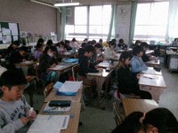 「ゆかいなまきば」の練習をしていました。最初に階名で歌い,その後でリコーダーの練習を行いました。