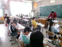 図書室で本を読んだり借りたりしているところです。本好きの子どもたちがとても多く,一生懸命本を探していました。