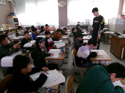 2組も詩の授業をしていました。「どんどこどん」などの音を表す言葉で書かれた「たいこ」などのユニークな詩を鑑賞した後,イメージマップを活用して自分でも詩を作っていきます。どんな詩ができるか楽しみです。