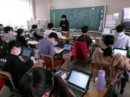 冬をテーマにして俳句を作っていました。タブレットを効果的に活用し,冬に関する内容を検索したり,タブレット上でイメージマップを作ったりしながら俳句を考えている子もたくさんいました。