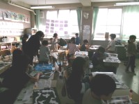紙版画の下描きを描いていました。タブレットなども活用しながら,一生懸命取り組んでいます。