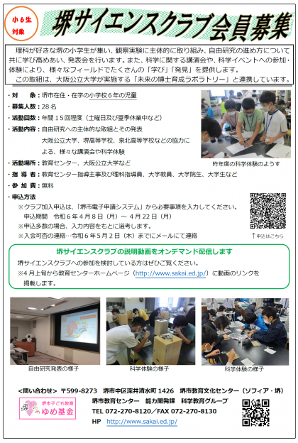 堺サイエンスクラブ会員募集