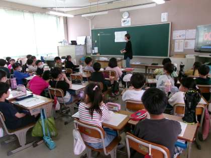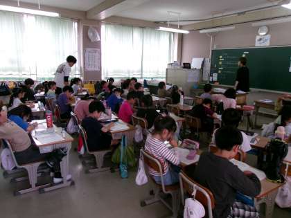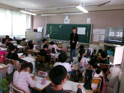 10×7の答えを求める問題に挑戦していました。今まで学習してきた九九の中にはないので,どうしたら求められるか各自で考え,その意見を交流していきます。