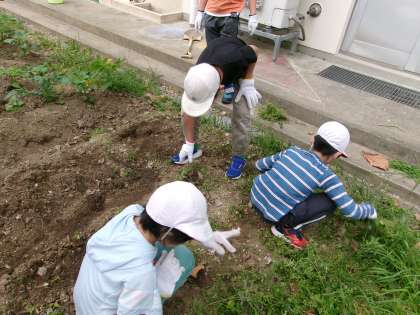 ひまわり学級のリーダ、副リーダーを決めました。6人のお友だちが立候補をしてくれました。「リーダーになったら、みんなで協力したい。みんなでなかよく、楽しく遊んだり、勉強したりしたい。」とたくさん発表をしてくれました。「リーダーをやりたい!」という気持ちがとてもうれしいです。新リーダーの進行で、今年度「ひまわり学級でやりたいこと」や「育てたい野菜」を決めました。最後に、ひまわり畑の草抜きをみんなでしました。