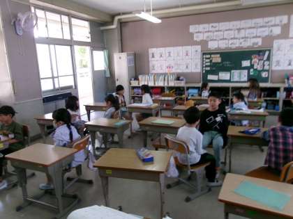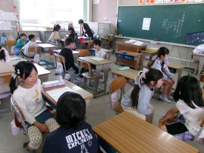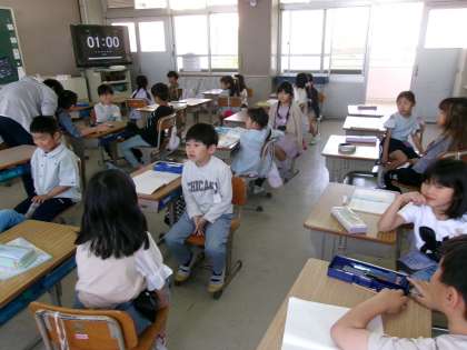朝の会の様子です。隣同士で1分間スピーチを行っていました。
