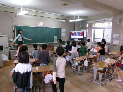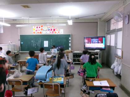 紹介してもらった動画を見て,さっそく体操をしているクラスもありました。