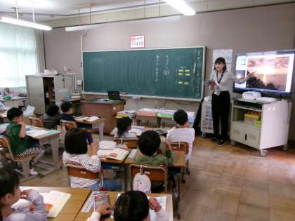 「あさのおひさま」という単元を学習していました。太陽が出てくる様子を違う言葉や表現で表していることに気づくことができました。