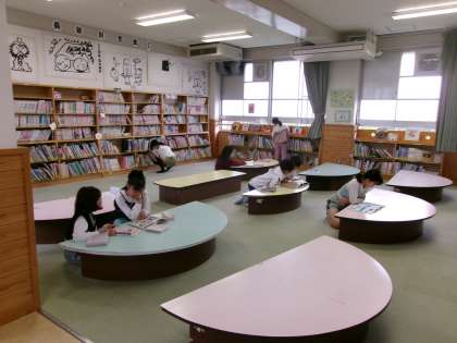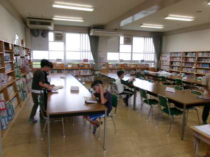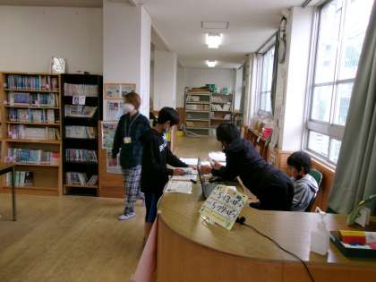 静かに本を読んでいました。5年生になると,借りたい本も子どもたちがバーコードをスキャンして貸し出しています。