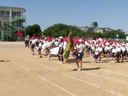 まずは入場行進の練習です。みんな真剣に取り組んでいました。