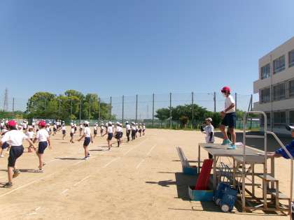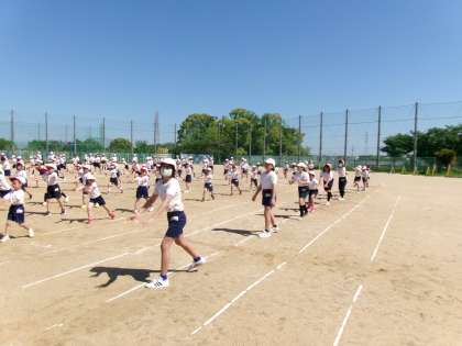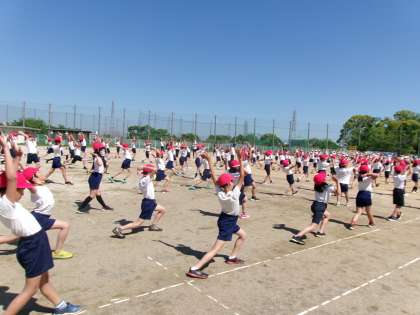 次に,「堺っ子体操」の練習です。体育委員会の児童が前に出て,お手本を見せていました。