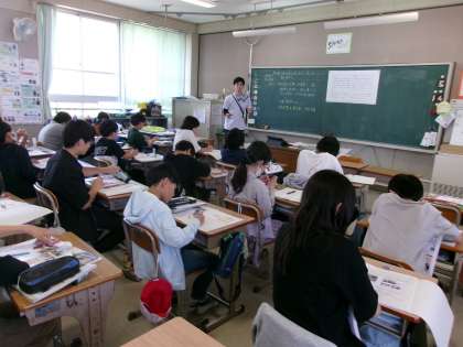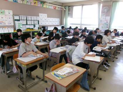 「平和主義」について学習していました。憲法の条文と意訳を紹介しながら,日本がどのようにして「平和主義」を進めているかについて学習しました。