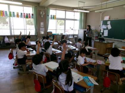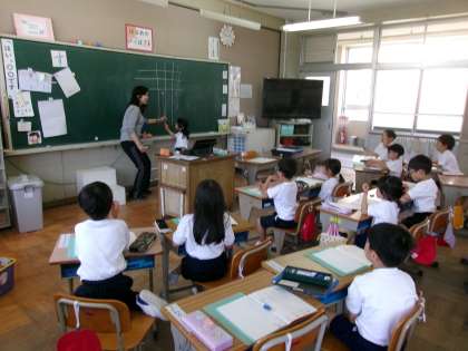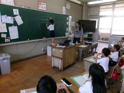 連絡帳の書き方を学習していました。どこに何を書いたらよいのか,子どもたちに確かめながら,連絡帳も合わせて書かせていました。