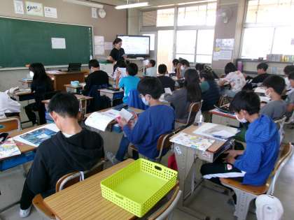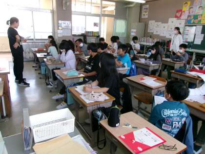 調理実習についての案内を配っているところでした。エプロンやマスクをつけることだけでなく,爪を短く切っておくことなどについても説明をしていました。
