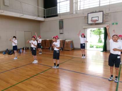 これは4年生だけで踊っている様子です。3年生だけの時も上手に踊っていましたが,4年生になるとキレや迫力が出てきました。