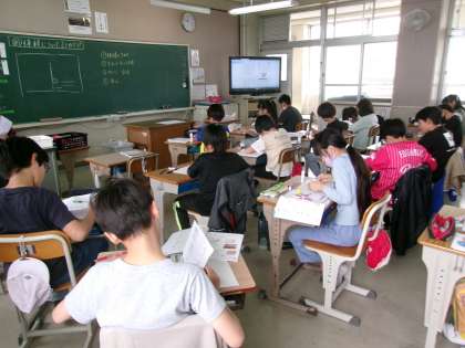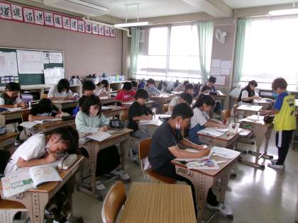 体積について,各自でまとめているところでした。体積の求め方や単位など,プリントや教科書を見ながら自分に合うやり方でまとめています。