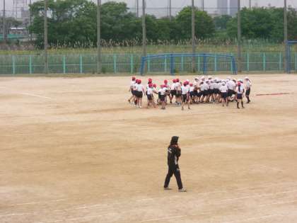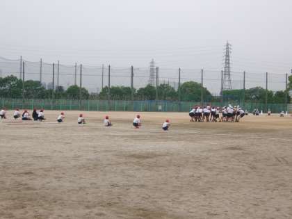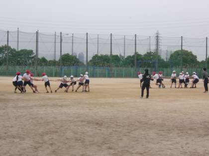 体育大会の団体競技を練習していました。棒が何本もあるので,力だけでなく作戦も重要になります。