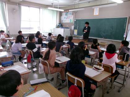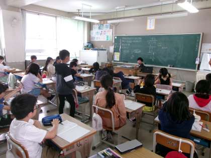 わり算の筆算の学習をしていました。まずは「たてる・かける・ひく・おろす」の筆算の仕方の順番をどれだけ速く言えるかを,時間を計りながら挑戦していました。その後,実際の問題に取り組んでいました。