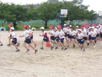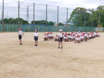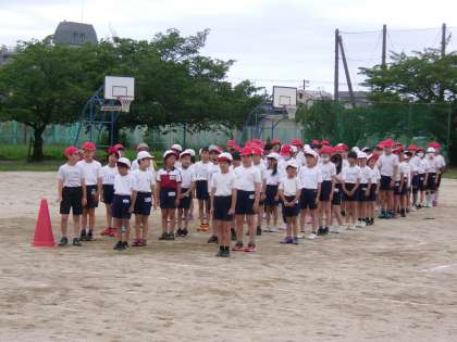 体育大会の練習をしていました。今日は徒競走の入場や並び方,退場の仕方の練習です。
