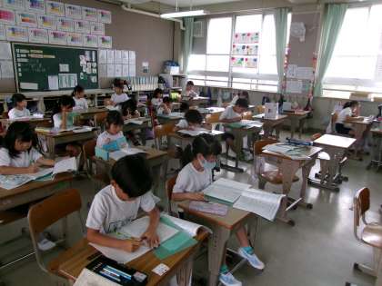 ひき算の筆算の問題に挑戦していました。できたら先生にチェックしてもらっています。みんな一生懸命取り組んでいました。