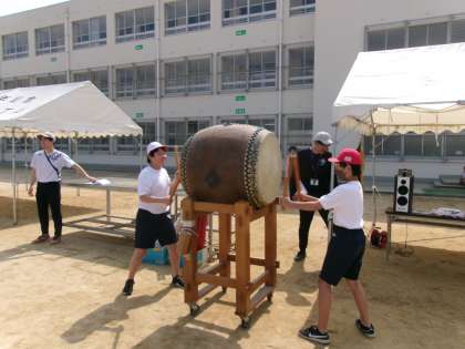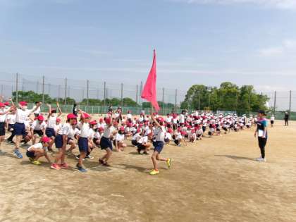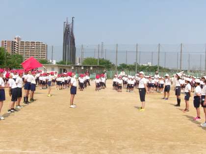 応援合戦の練習も行いました。子どもたちは,一生懸命大きな声で応援をしていました。