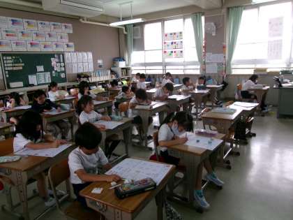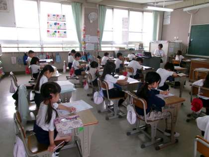 ひき算の筆算のテストをしていました。みんな真剣に取り組んでいました。