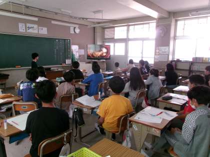 「相手が話したくなる聞き方を実践しよう」というめあてで学習を進めていました。動画で聴き方のコツを話しているのを見ながら,どうしたら話したくなるような聞き方になるか考えています。先生からも「う・め・ら・い・す」(う=うなずきながら,め=目を見て,など)というキーワードを聞いて,次回議論する内容について考えていました。