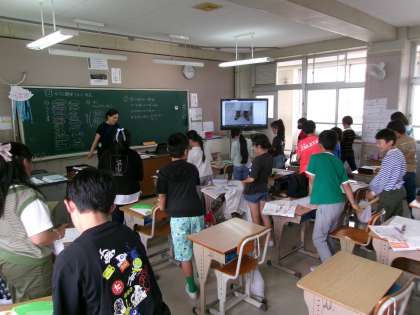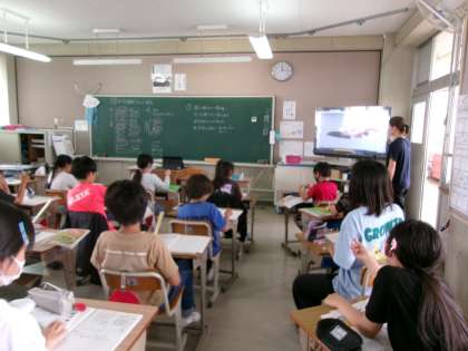 包丁の使い方を動画で視聴していました。ものさしを包丁に見立てて,実際に切る練習をしてみました。また,相手に渡す時にはそのまま手渡さないことや,机の上に直接置くのではなくふきんなどの上に置くことなども確認することができました。