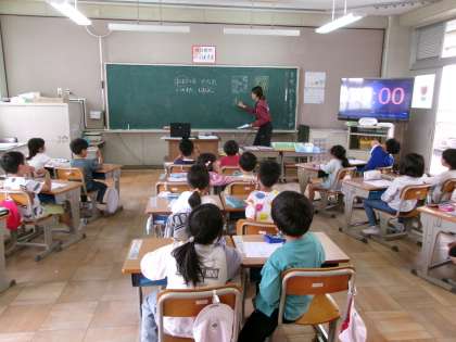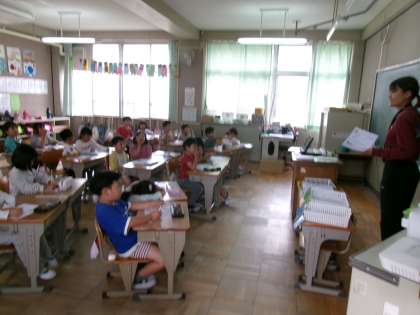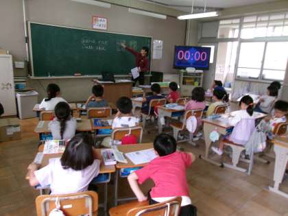 ひらがなの「お」の字の練習をしていました。「お」の字も難しいひらがなの一つですが,みんな上手に書いていました。
