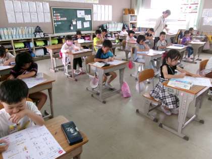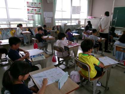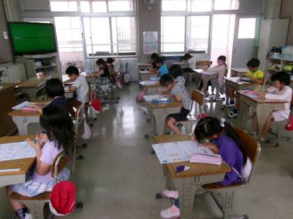 テストをしていました。みんな集中してテストに取り組んでいます。