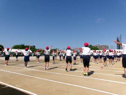 新・堺っ子体操の様子です。今年度から,ラジオ体操の代わりに新・堺っ子体操を行いました。