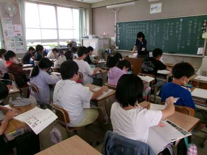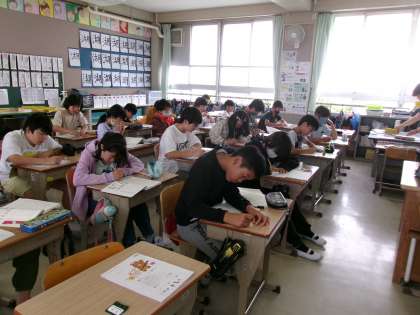 「時計の時間と心の時間」という教材を学習していました。今日は,段落構成を確認した後,文章を読んだ感想を書いていました。