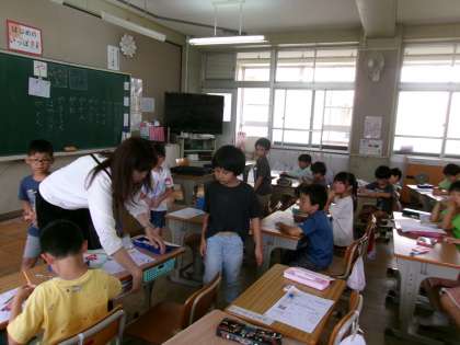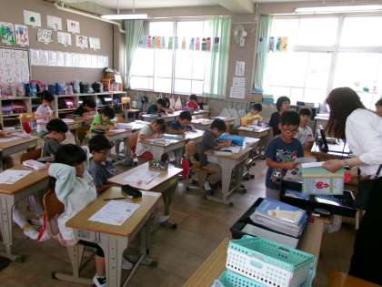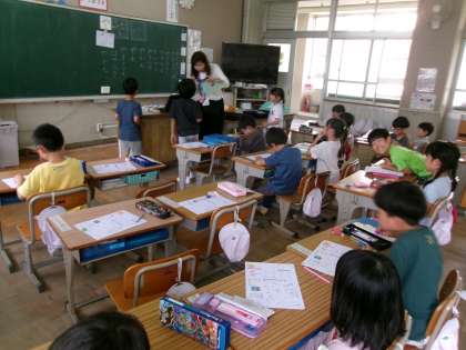 ひらがなの「や」の学習をしていました。「や」がつく言葉を交流した後,一生懸命練習していました。