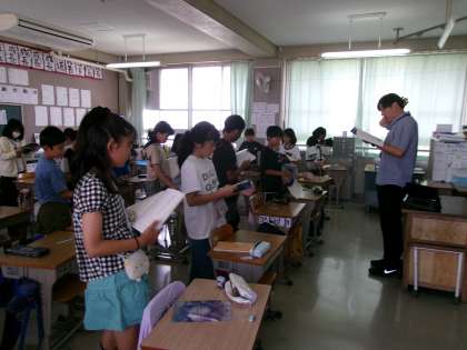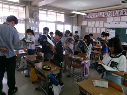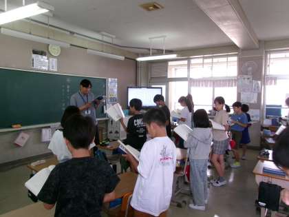 「言葉の意味が分かること」という教材を学習していました。今日は,大まかな筆者の言いたいことについて考えることをめあてに学習を進めていました。写真はみんなで立って音読をしているところです。
